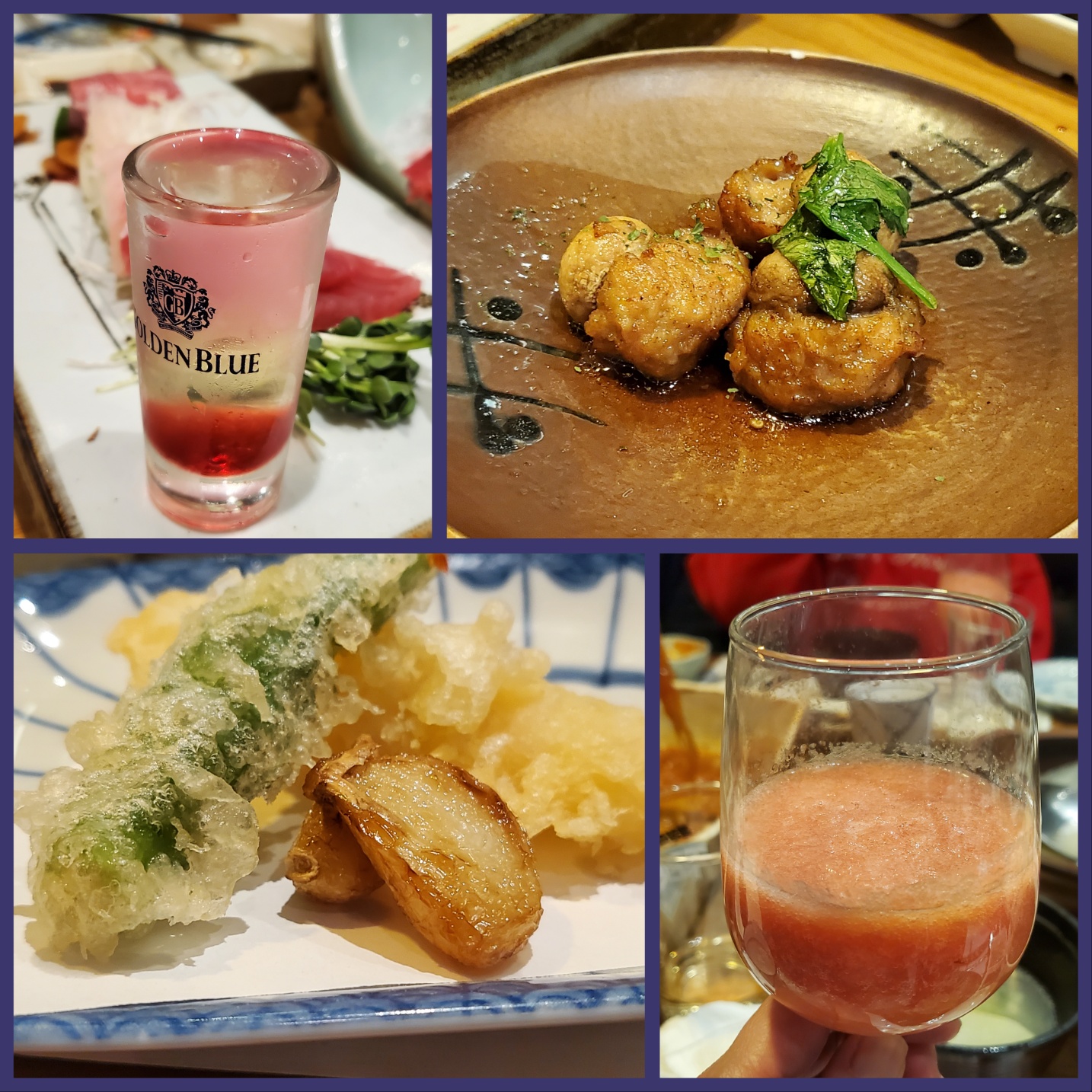 - 참치눈물주랑 버섯완자랑 튀김 마지막으로 토마토 주스가 후식으로 나와요.