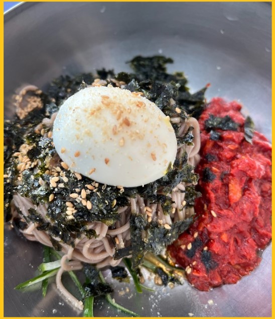 막국수에도 저렇게 명태양념이 곁들여지는데요 아... 오리지널 막국수는 그 텍스쳐가 쫀쫀한 게 아니라 머랄까.. 도토리묵을 면으로 만든 느낌이랄까 풀어진 푹 익은 라면의 느낌이랄까 암튼 지인한테 물었더니 원래 막국수가 저런 거라네요